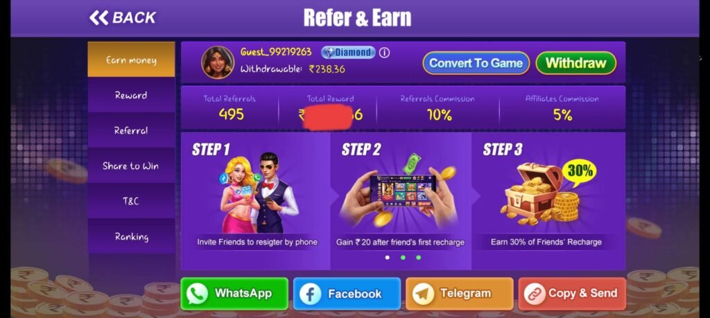 दोस्तो आप Maha Game Apk में दो प्रकार से अपना कमाई कर सकते हैं। पहला की आप गेम खेल कर अपना कमाई कर सकते हों। दूसरा की आप इस एप्लिकेशन को अपने किसी भी दोस्त या सोशल मीडिया पर भेज कर आप बहुत सारा रुपया कमा सकते हैं। हमने अभी तक 450 से अधिक लोगों को शेयर कर दिए हैं और बहुत सारे रुपया भी कमाते हैं। तो आप भी चाहते हैं कि मेरे जैसा आप भी कमाना तो हमारे Teligram Channel को Ko ज्वाइन कर लीजिए। हम वहां पे न्यू एप्लिकेशन का लिंक डालते हैं।