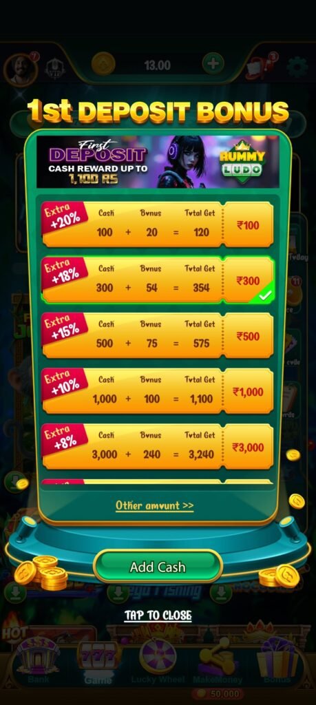 तो दोस्तो आपको Rummy 888 App में गेम खेल रहे हैं। तो आप गेम खेलते खेलते रुपया हार गए। तो आप इस में रुपया ऐड कर के भी गेम खेल सकते हैं। आप गेम में जितना रुपया डालिएगा। उतना ही आपको प्रॉफिट होगा। यदि आपको रुपया को ऐड करने में कोई परेशानी आता हो तो हमने नीचे पूरी जानकारी दिया है। आप वहां से उस को समझ कर देख लेना हैं।